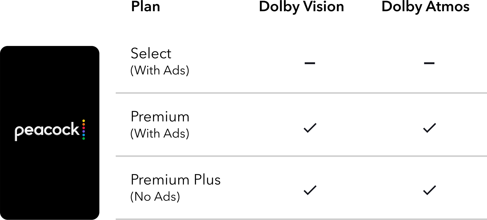 Love every minute of your favorite sports in Dolby on Peacock. All you need is a Peacock Premium or Premium Plus subscription and a Dolby Atmos-enabled soundbar or TV. Discover the perfect fit for you.